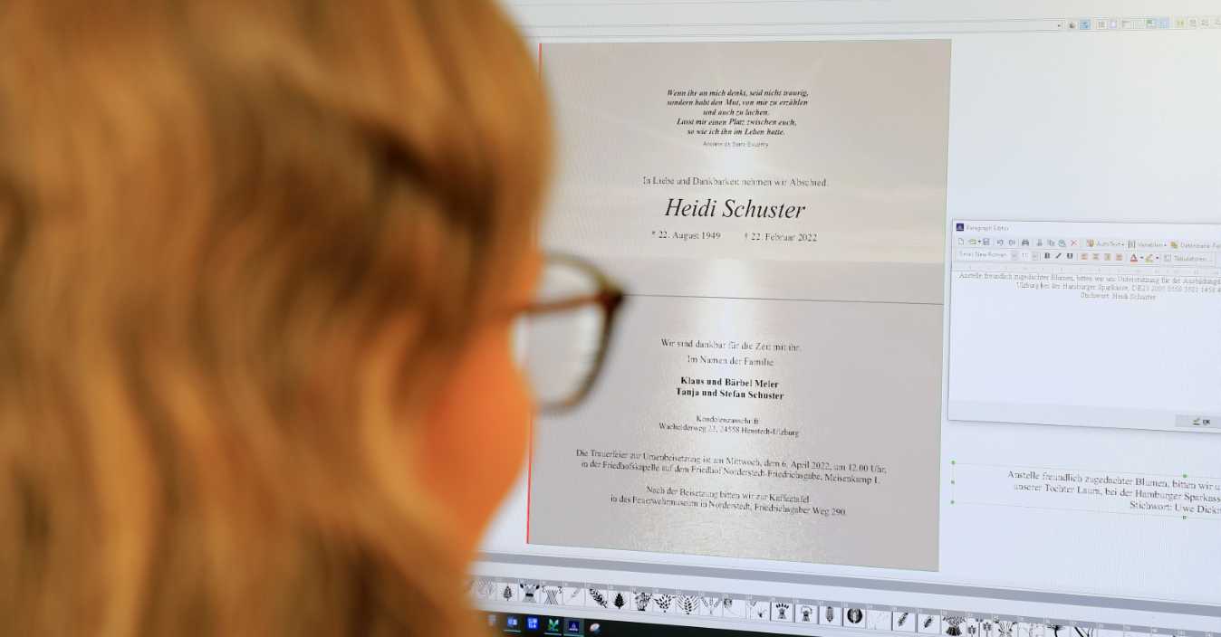 Ob Traueranzeige, Danksagung, Jahrgedächtnis oder Nachruf: Wir setzen Ihre Trauerkommunikation stilvoll um und sorgen für das wunschgemäße Layout, den Druck, den Versand und die Veröffentlichung in der Zeitung Ihrer Wahl.