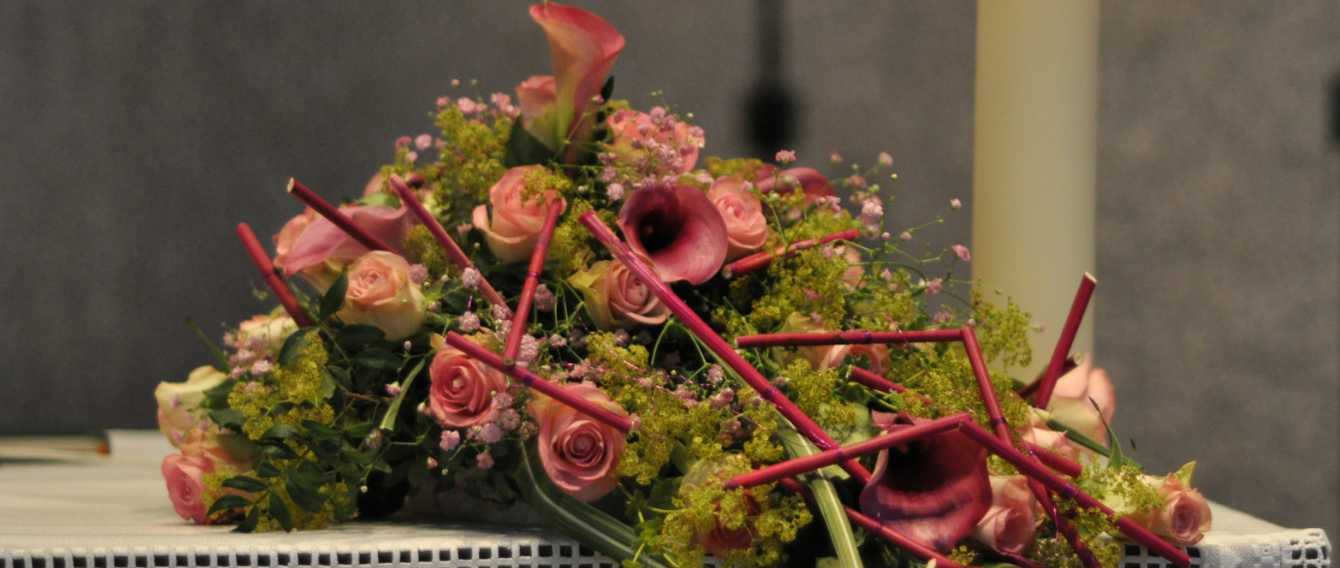 Die Trauerdekoration setzt sich aus besonderen Erinnerungsstücken, wie z. B. Fotos oder persönlichen Gegenständen, sowie dem ausgewählten Blumenschmuck zusammen. Ob traditionell, modern, verspielt oder dezent: Wir richten uns nach Ihren Wünschen und gestalten den Rahmen in Würde und mit viel Liebe zum Detail.
